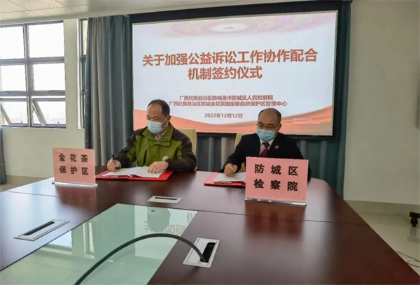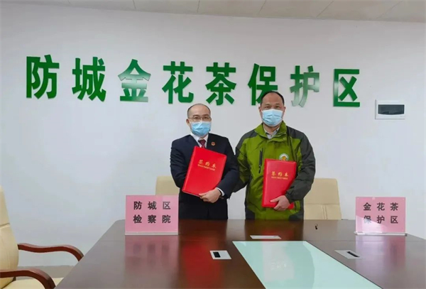 近日,防城区检察院与广西防城金花茶国家级自然保护区管理中心联合召开关于防城金花茶国家级自然保护区生态环境和资源保护公益诉讼协作座谈会,共同签订了《关于加强公益诉讼工作协作配合的意见》,开启对广西防城金花茶国家级自然保护区“检察公益+专业保护”协作新格局。