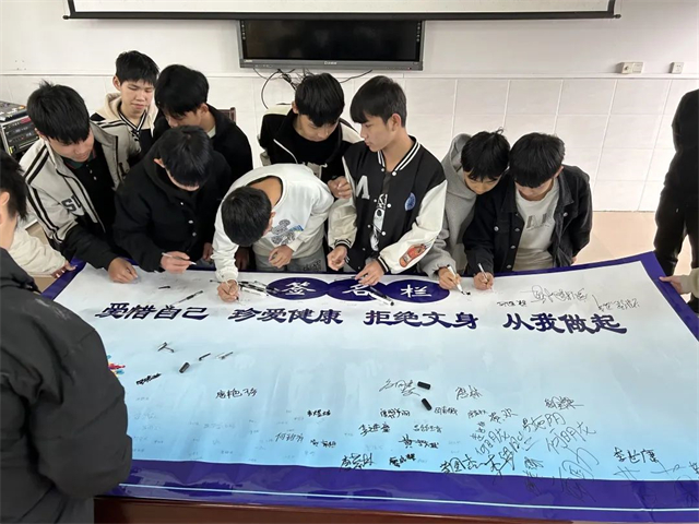 课堂结束后,同学们纷纷签名承诺要“爱惜自己、珍爱健康、拒绝文身、从我做起”。